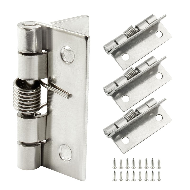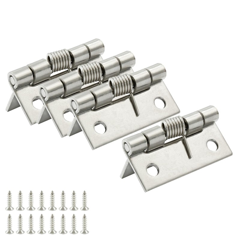 - 【What You Get】 : 4 x Stainless Steel Spring Hinge, (Mounting screws are includes). Size: 1.5 inche hinges.
