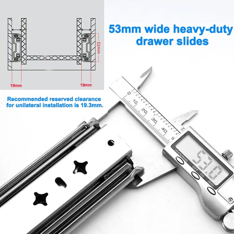 - Specification: Width:53mm;Length:20inch; Feature:with safe locking device.Attention:It's only locked when it's closed and fully extended.