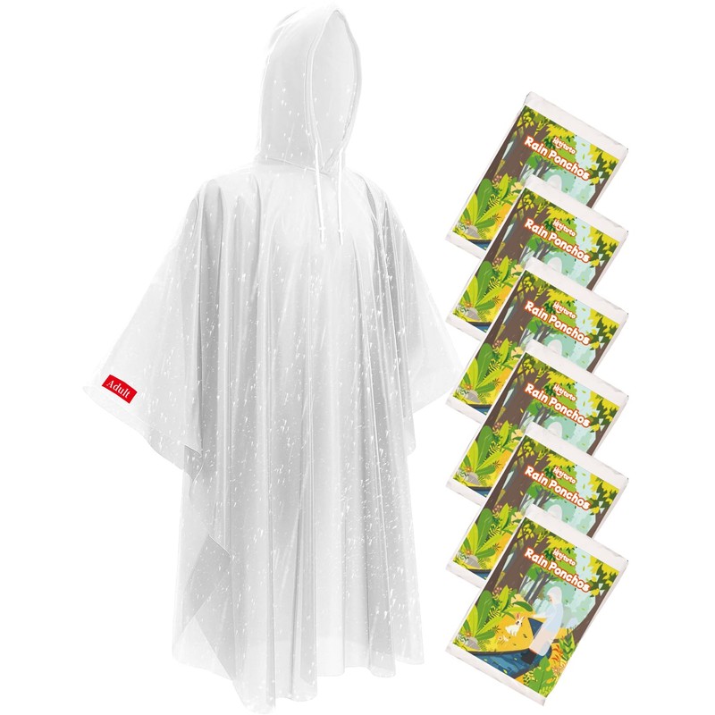 Hitituto Disposable Rain Ponchos - Extra Long Waterproof Emergency Poncho with Hood for Adults, Bulk Family 6 Pack Raincoat for Park, Concerts, Hiking, Camping Essentials, Survival Kits, White