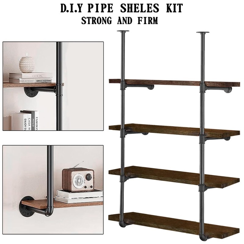 • 【VERSATILITY】This industrial-style floating pipe shelf fits any decor. Use it as a bookcase, living room or bathroom rack, or a unique flower display. Ideal for homes, offices, bars, cafes, garages, or workshops. A DIY-friendly storage solution.