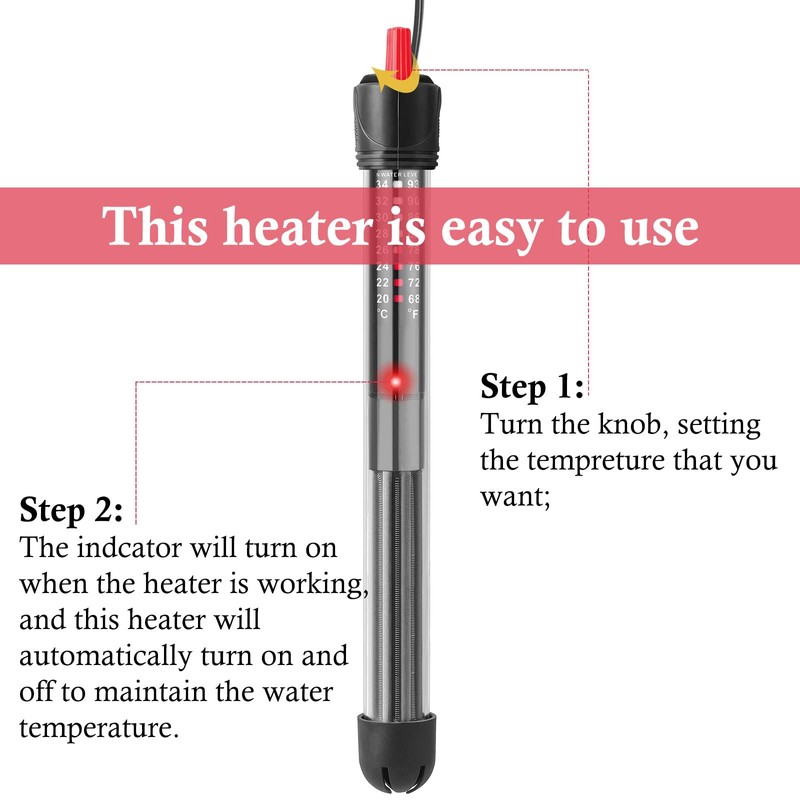 Please be sure that the heater needs to be completely sunk into water, horizontal or vertical fixed in the water cycle better place, and let the working light can be seen as clear as possible.