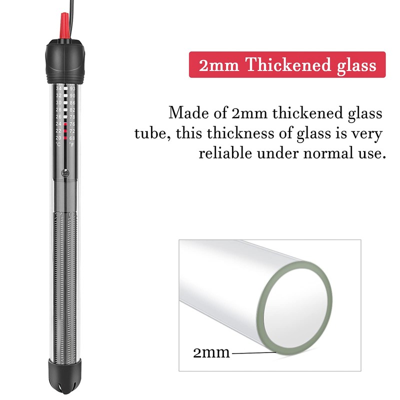 • Explosion Proof: 2mm thickened quartz glass, 33% thicker than normal aquarium heaters, much safer for both human and animals.