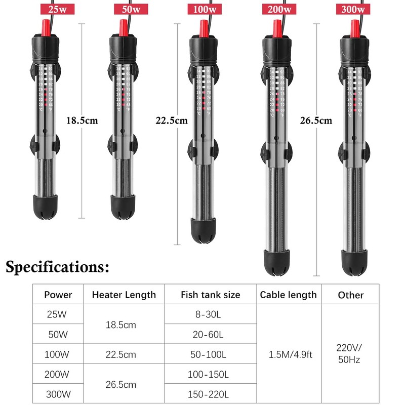 • Application:200W suitable for 100-150 Litres water, suitable for both fresh and marine water,suitable for all kinds of fish and plants.