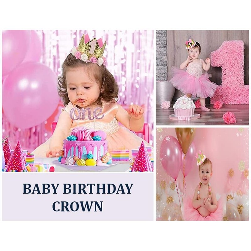 Hitopin 1 Piece Birthday Baby Crown, Baby Princess Crown Birthday Crown Hair Band Hair Accessories Princess Birthday Crown Girls Hair Band Baby Birthday Hat (Pink)