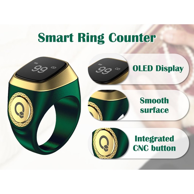 - 💖 Smart Tasbih Zikr Ring Counter: Zikr smart ring counter has built in Bluetooth connection application, which can quickly connect to applications, obtain accurate directions, and synchronize data with smartphones. Digital electronic smart tally counter are a useful tool for Muslims who want to record their prayers, making Muslim worship smarter and simpler for all Muslims around the world.