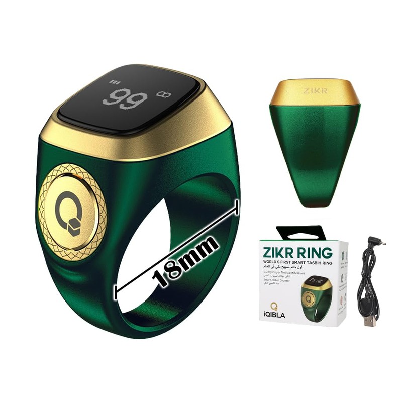 Hitopin Smart Ring Counter, Smart Tasbih Zikr Ring, Muslim Islamic Prayer Smart Rings,Tasbih Counter Smart Ring, Digital Electronic Smart Tally Counter, Tasbeeh Smart Counter for Prayer (Green, 18mm)