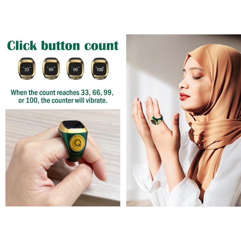- 💖 Smart Vibration Alert: The tasbih counter smart ring has a button that can be clicked to count. When the count reaches 33, 66, 99 or 100, the smart ring counter will vibrate. Use a tasbih counter smart ring to easily track your daily Tasbeech count anytime, anywhere.