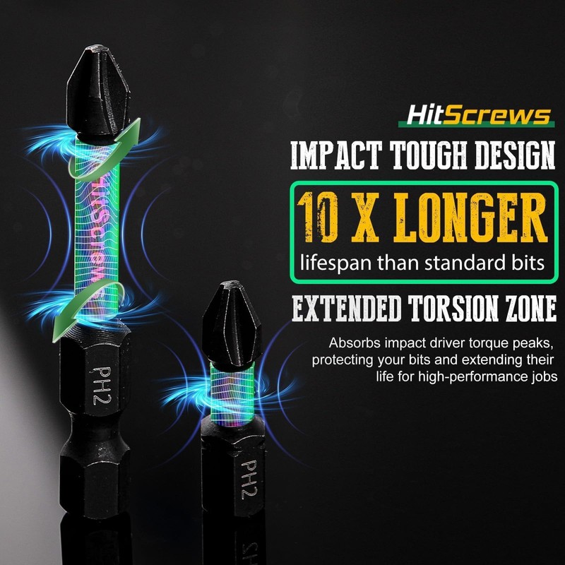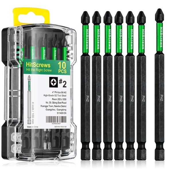 Hitscrews PH2 Phillips Bits #2 – 10 Pack 4" Extra Long Impact Driver Bits,S2 ...