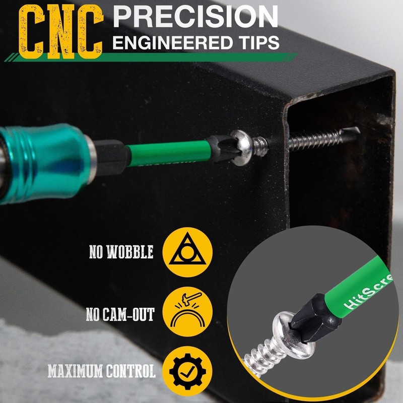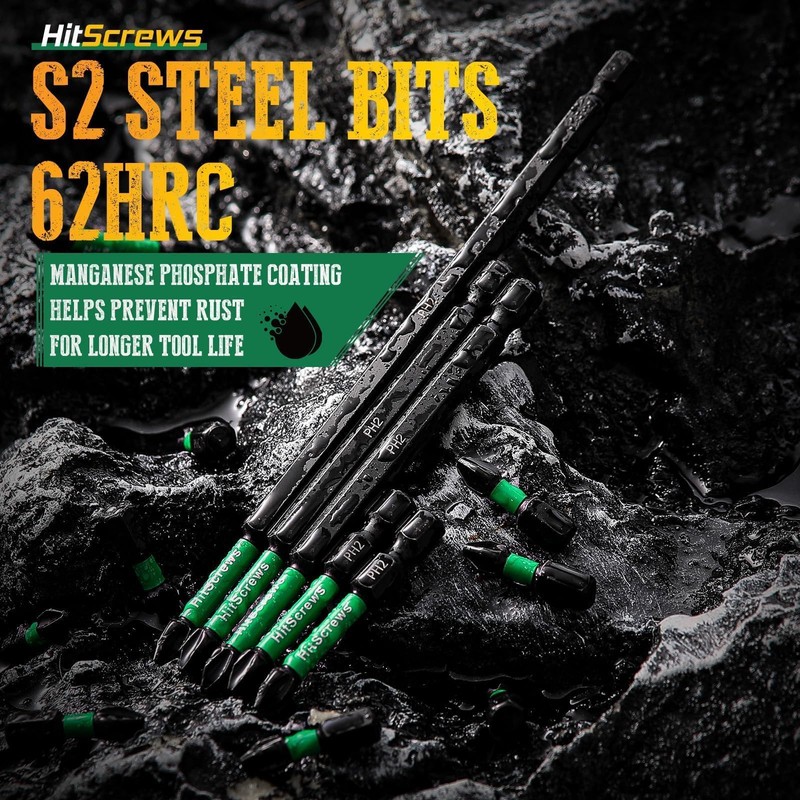 Engineered from premium S2 steel and finished with black phosphate coating, these extra long power bits deliver strength and corrosion resistance on the job. Whether you're driving screws into cabinetry, decking, vehicle parts, or outlet boxes, these 4 inch magnetic screwdriver impact bits are CNC-machined to grip securely and minimize strip-outs.