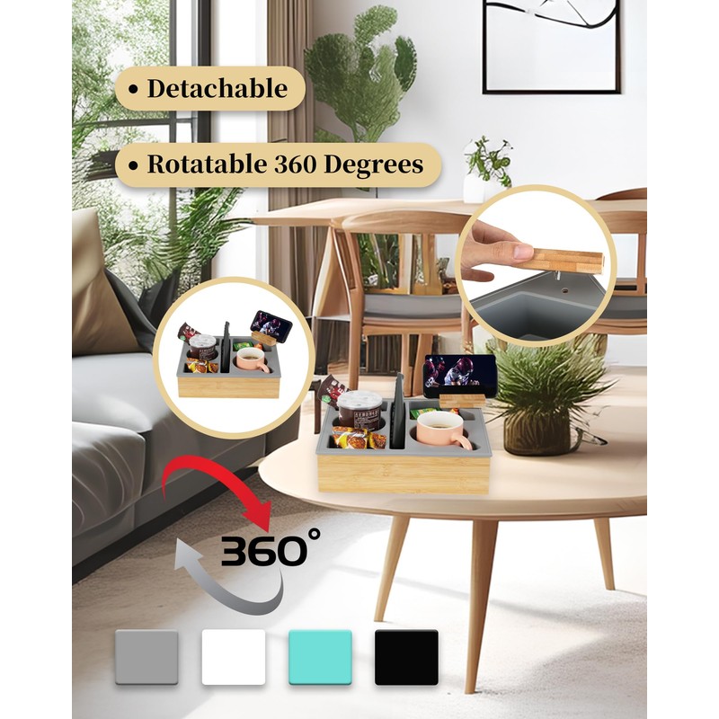 - ?[Soft Silicone+ Sturdy Bamboo Boards]: The sofa cup holder is made of food-grade silicone and bamboo boards, so the couch drink holder can keep their original shape without deformation even after long-term use. The smooth silicone material of the couch drink holder won't produce scratches, the couch caddy is waterproof and unbreakable, and the couch tray can be cleaned by gently wiping. The tray table also adds a touch of personality and charm to their interior accessories.