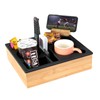 - ?[Wide Applications]: This couch caddy with cup holder is lightweight and compact, suitable for the backseat of the car, work desk, bed, sofa, boat, at the beach, picnic, camping, traveling. The couch cup holder tray is not only good for leisure and relaxation, but also a good partner for storage, usually the couch drink holder can be used to store stationery for work, remote control, or other household gadgets.
