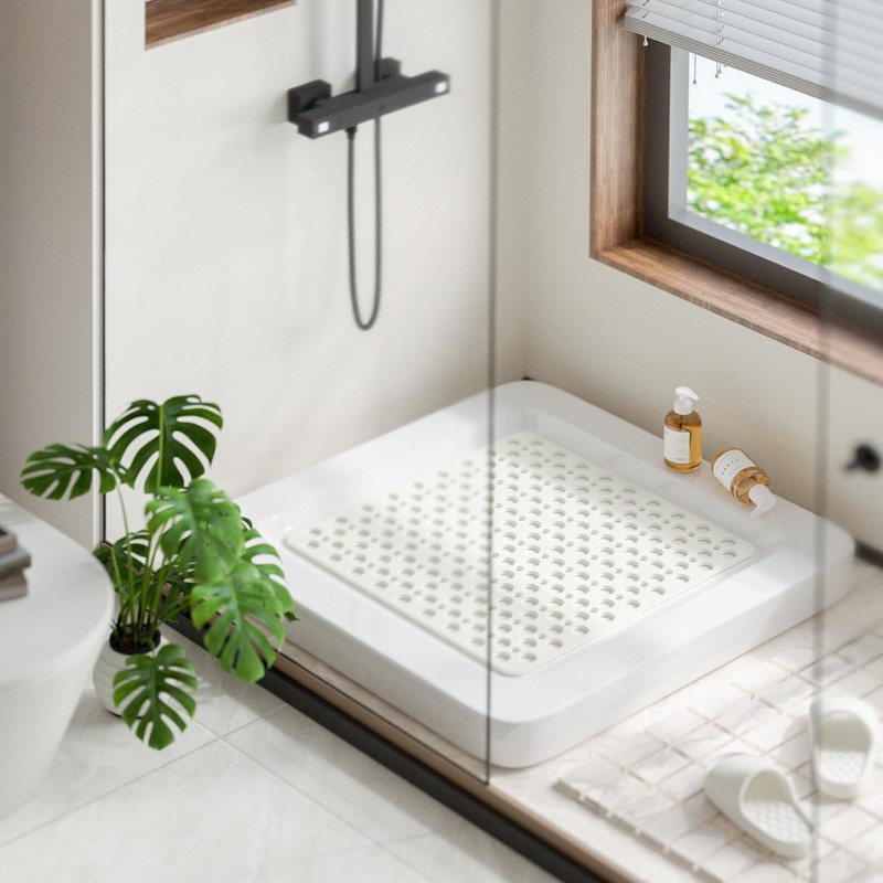 HITSLAM Shower Mat Anti Slip, 21x21 Inch Square Bath Mat for Tub Non Slip with Suction Cups and Drain Holes, Machine Washable Bathroom Shower Stall Floor Mat, Soft on Feet, White