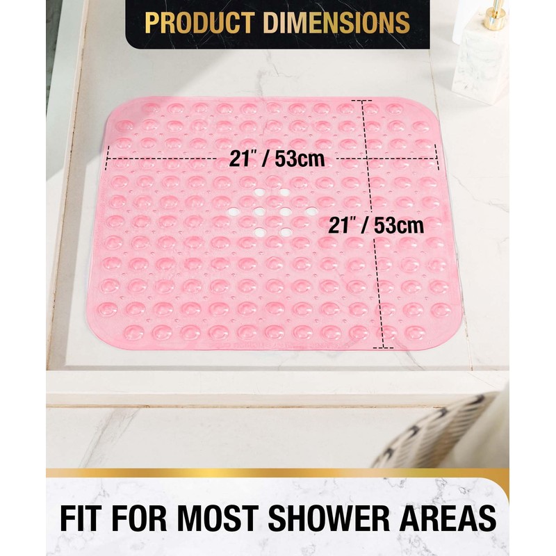 - Generous 53x53cm Mat: Elevate your bathing experience with our square shower mat, measuring a spacious 53 by 53cm. This ample coverage ensures a perfect fit for most shower areas, making it an ideal choice for home, gym, or spa use. Choose from 8 stylish colors to seamlessly complement any bathroom decor theme.