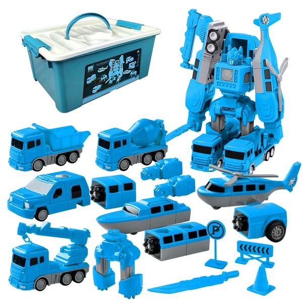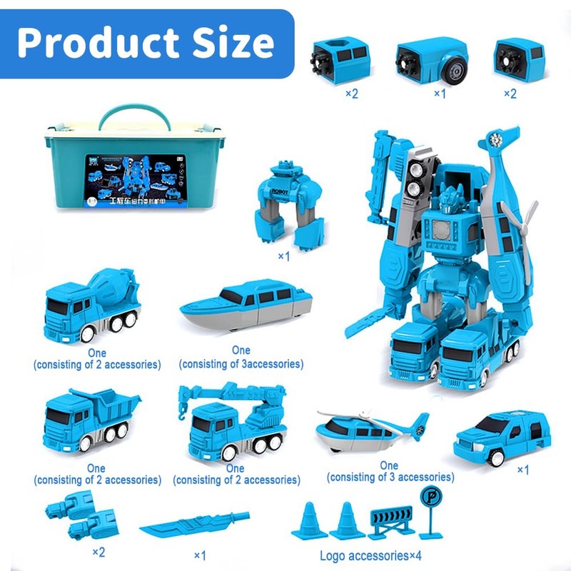 - [Magnetic Transform Engineering Assembled Car Toys] Our transforming robot car toy is a sea, land and air series, containing 26 parts. Magnetic parts can be easily connected and disassembled, and children can enjoy endless fun through the easy assembly process.