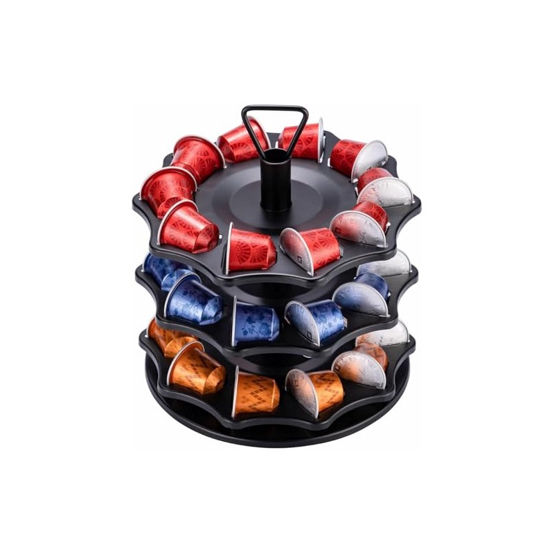 • Space-saving design - With a compact footprint of 18 x 21 cm, this original pod carousel fits even in the smallest of spaces. Each layer holds 10 capsules, for a total capacity of 30 capsules, making the most of limited space.