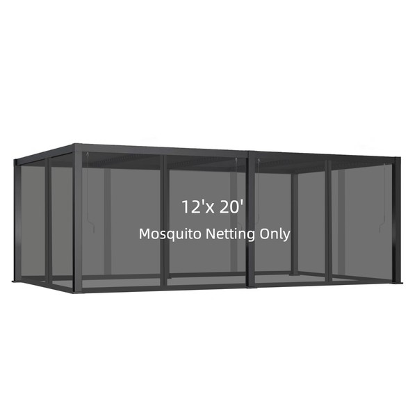 Hiviva 12x20FT Mosquito Netting for Gazebo,Pergola,Pop up Canopy Tent,6-Panel with Zipper for Outdoor Patio,Backyard (Black,Mosquito Net Only)