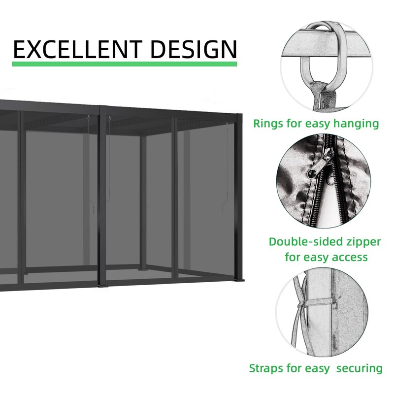 - 【Easy to Install】We provide plastic snap rings for easy hanging. Insert the rings into the netting loops and hang them over the gazebo or pergola frame. Then tie the netting's straps to the posts.