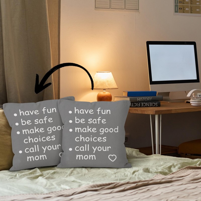 HIWX Funny Quote Have Fun Be Safe Make Good Choices Call Your Mom Black Decorative Throw Pillow Cover, Graduation Gifts for Sofa Bed Room Home Children Dorm Decor 18 x 18 Inch Pillow Case(Gray)
