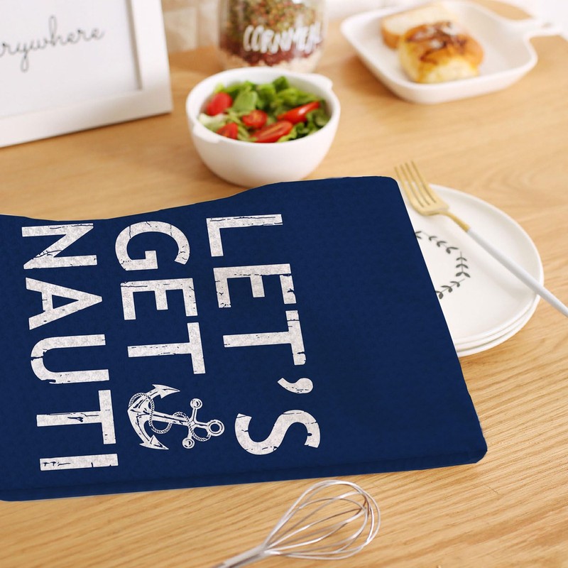 HIWX Nautical Coastal Beach House Let's Get Nauti Navy Blue Decorative Kitchen Towels and Dish Towels,Rustic Ocean Themed Anchor Hand Towels Tea Towel for Bathroom Kitchen Decor 16×24 Inches