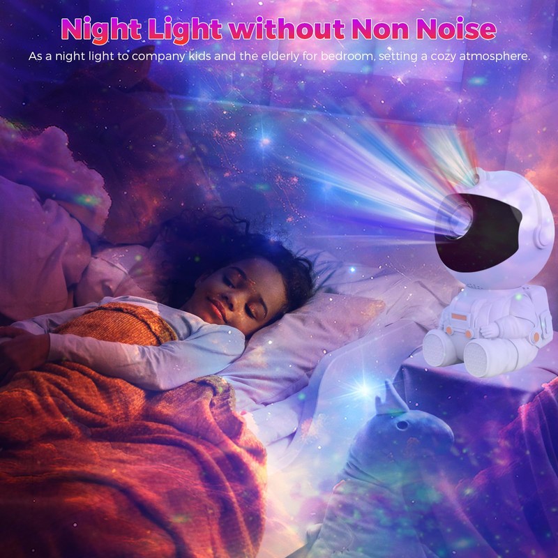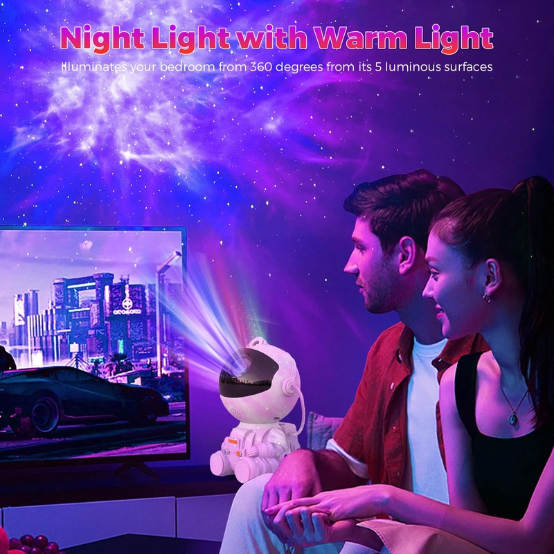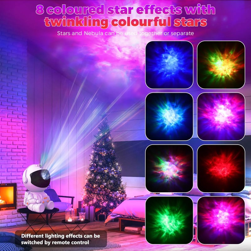 - Astronaut Galaxy Projector: Captivating Galaxy & Nebula Effects! The Astronaut Star Projector light features 8 coloured star effects with twinkling colourful stars. Elevate your home’s ambiance with our Astronaut Galaxy Projector, which features a mesmerizing blend of stars, nebula clouds, and vibrant colors. Transform any room into a starry wonderland, perfect for relaxing, entertaining, or creating an enchanting nightlight for kids and adults alike