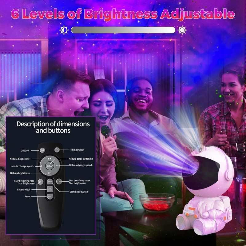 - Perfect for All Occasions & Ages: Whether it's for a romantic evening, a kid’s bedtime, a themed party, or just to unwind, this projector is ideal for creating a magical atmosphere. Its whimsical astronaut design and dazzling light effects make it a delightful gift for birthdays, Christmas, or any special occasion
