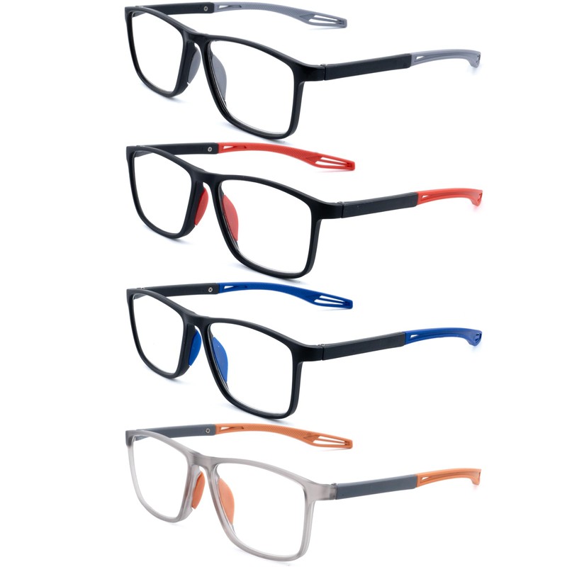HIYANJN 4 Pairs Blue Light Reading Glasses for Men Sports Style Ultralight Rectangular Eyeglasses