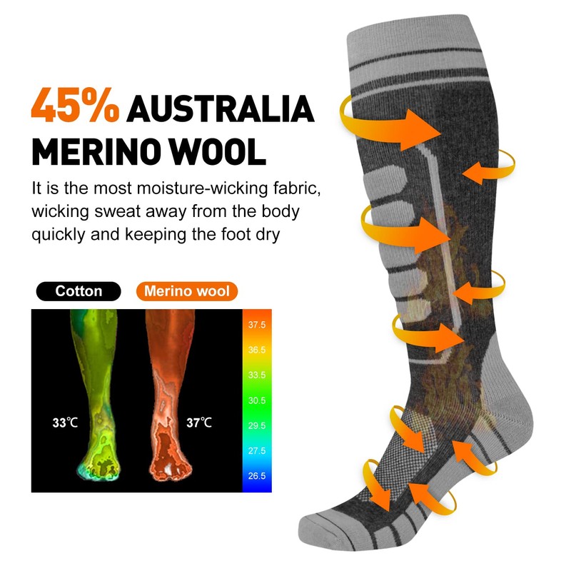 HIYATO 2 pairs of ski socks for men and women, merino wool socks, thick thermal socks, warm winter socks, breathable sports socks.