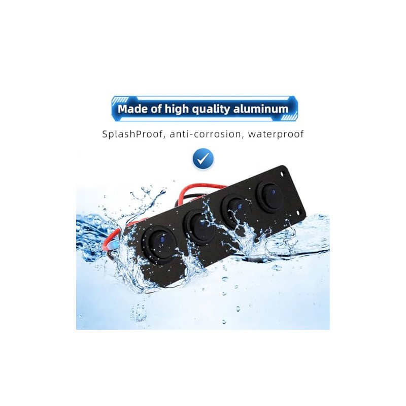 - Premium Quality:The pre-wired toggle switch panel can control any 12V DC devices. Made of high quality ABS and aluminum panel, durable and IP65 waterproof, splash-proof, anti-corrosion.