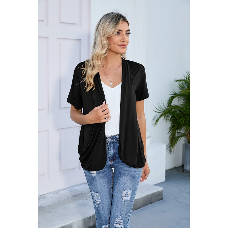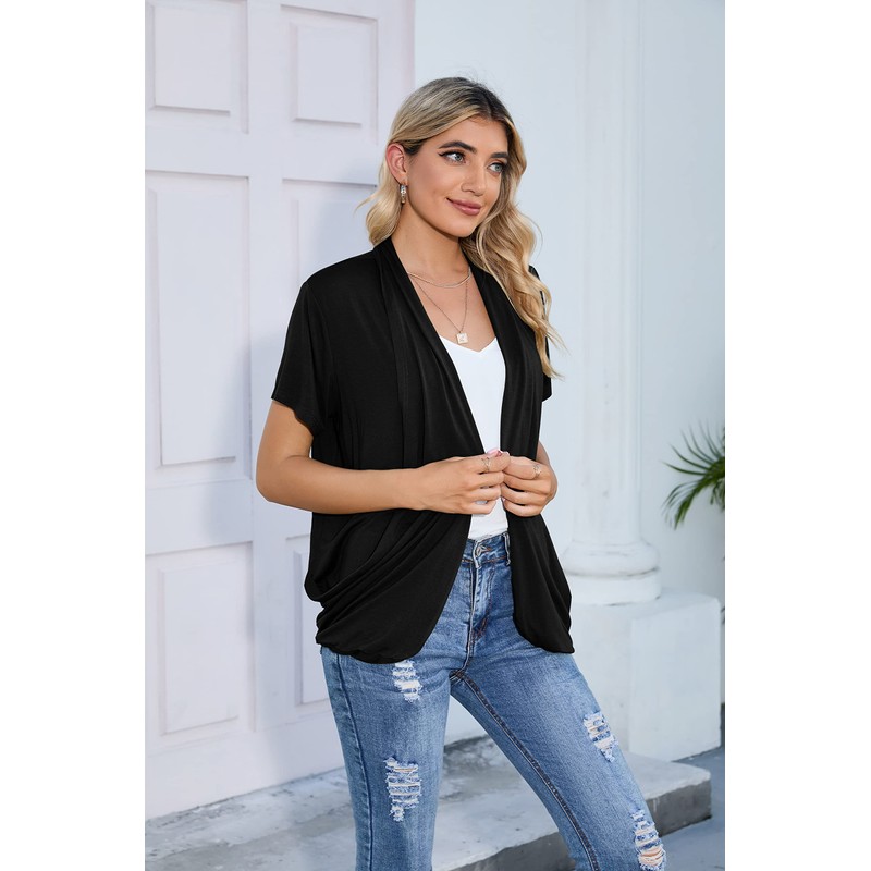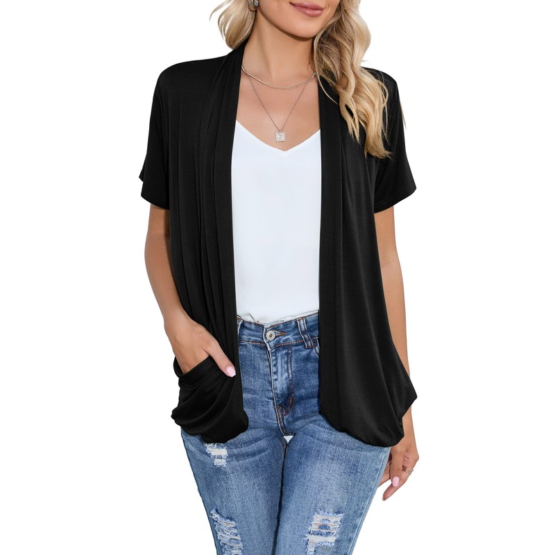 HIYIYEZI Casual Short Sleeved Cardigans Tops for Women Summer Dressy Soft Lightweight Beach Cover-up Plus Size (2X-Large,Black)