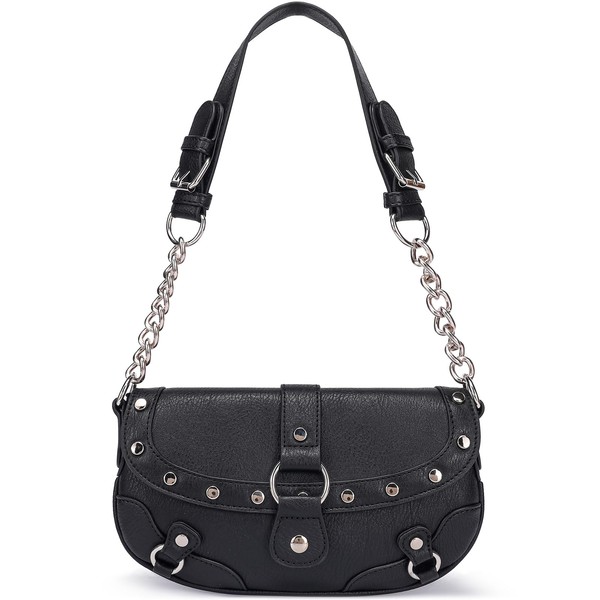 HIYOLALA Women's Punk Retro Y2k Mini Purse Rivets Small Saddle Shoulder Bag with Chain Strap and Buckles