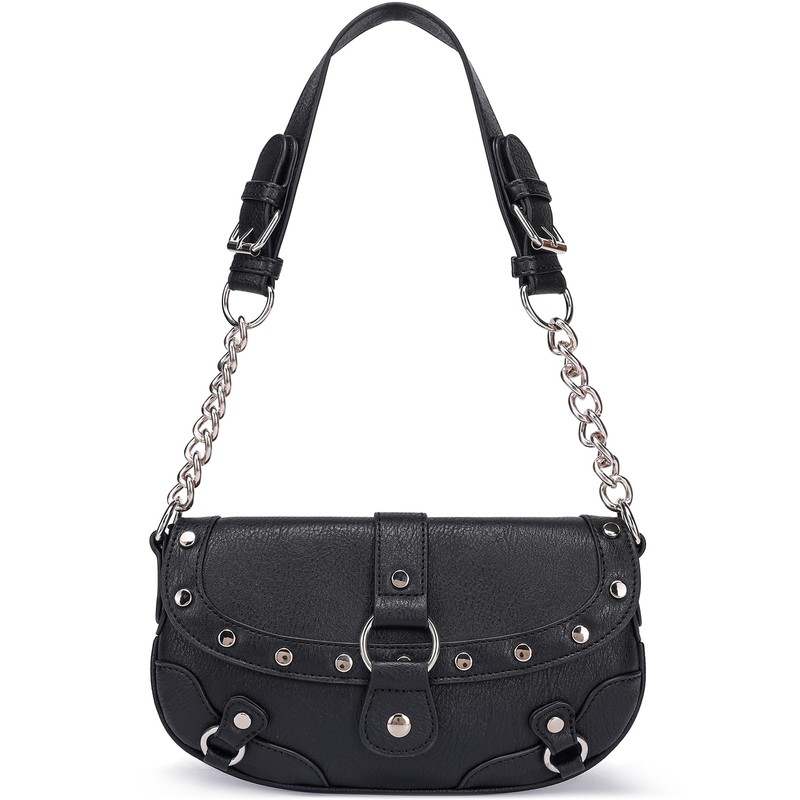 - Retro Punk Y2K Design: This rivets shoulder bag features a Y2K-inspired saddle silhouette, edgy silver-tone rivets and buckle accents. The vintage-meets-modern aesthetic adds a trendy flair to your outfit.