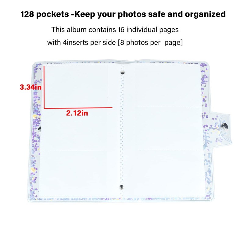 • Compatibility: This mini photo album fits 3 inch photos taken with Fuji instax mini 11/8/9/7s/25/70/90/EVO, Polaroid Snap instant camera, etc. This photo card album can also contain credit cards and name cards.