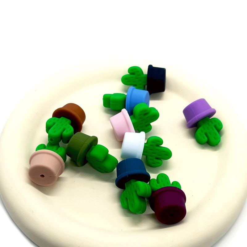 - 【Great Value】You will get 10 pcs 3D green cactus pot silicone beads and the pots are in 10 different colors, enough to meet your own DIY art craft needs. Hole Size: 2mm.