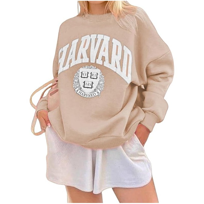 HIZIPOP Womens Graphic Sweatshirts Oversize Crewneck Sweatshirt Long Sleeve Drop Shoulder Fleece Pullover(Khaki,L)