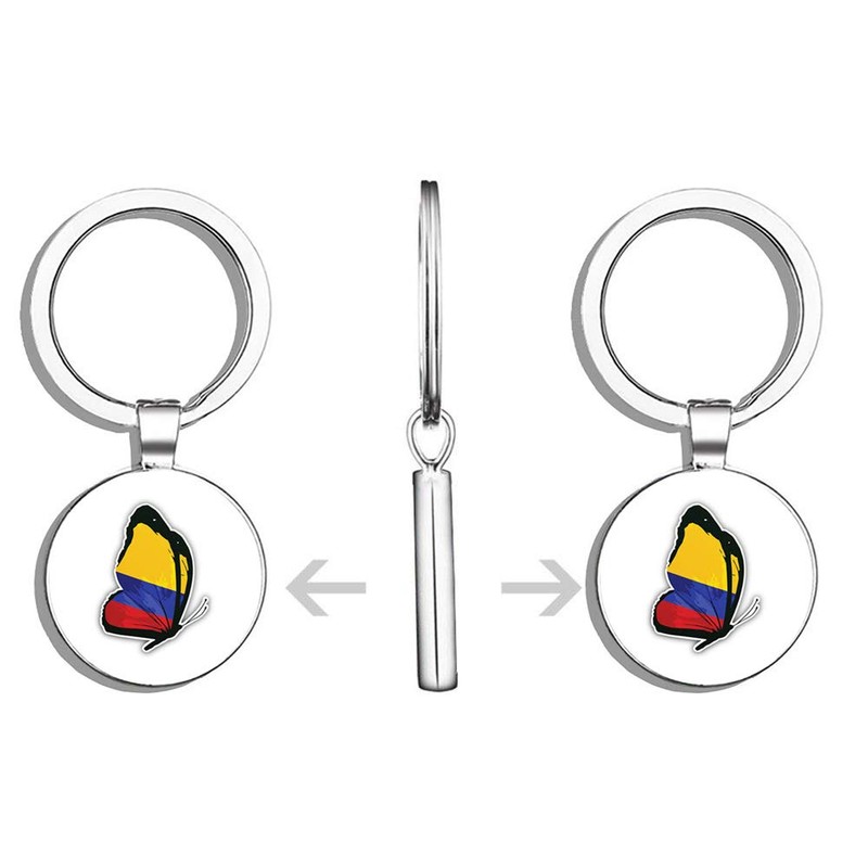 HJ Media Colombia Flag Butterfly Metal Steel Keychain Ring Double Side Key Chain