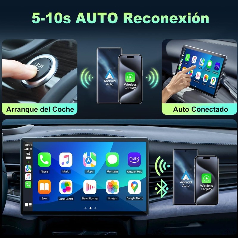- 【Nota】Asegúrate de que tu coche viene con Carplay o Android Auto antes de comprar este producto.