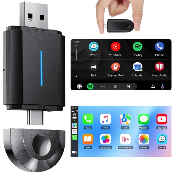 - 【2 en 1 Adaptador Carplay Inalámbrico】Esta Carplay compatible con inalámbrico CarPlay y Android Auto, convierte tu coche con función carplay por cable en carplay inalámbrico, o Android Auto por cable en inalámbrico, conecta sin esfuerzo tu smartphone al sistema de infoentretenimiento de tu coche de forma inalámbrica. Le permite utilizar de forma inalámbrica las funciones completas de CarPlay & Android Auto y conservar las operaciones originales del automóvil, como navegación, reproducción de música, el asistente de voz, las llamadas telefónicas, etc.