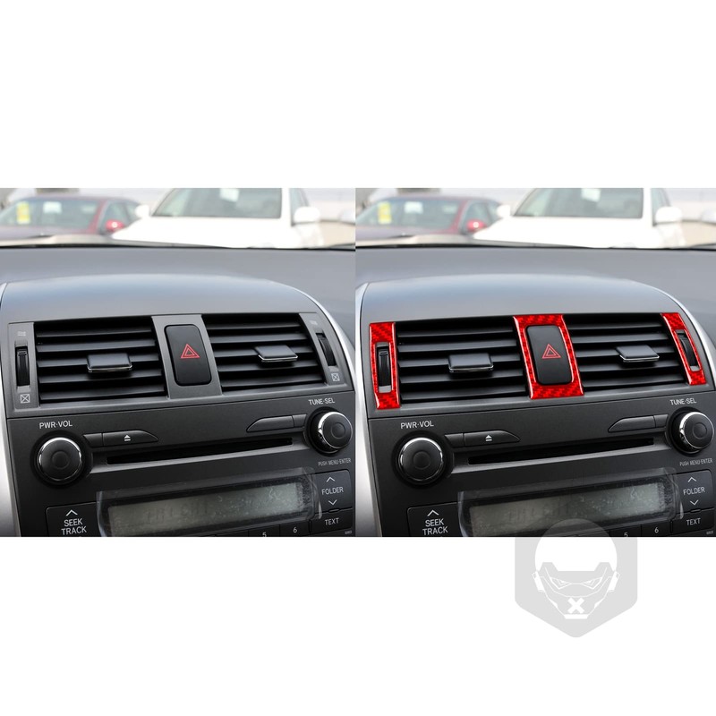 HJGHR Car Center Console Instrument Decoration Carbon Fiber Auto Air Vent Outlet Trim Vehicle Interior Accessories Compatible with Toyota Corolla 2009 2010 2011 2012 2013 Red