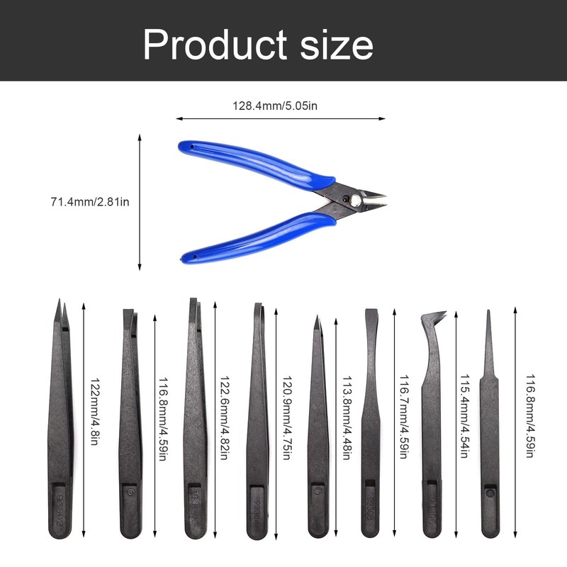 - Professional tweezers with side cutters: pliers set has a sharp blade with integrated return spring, which automatically springs back. The plastic handle sits comfortably in the hand and is easy to use