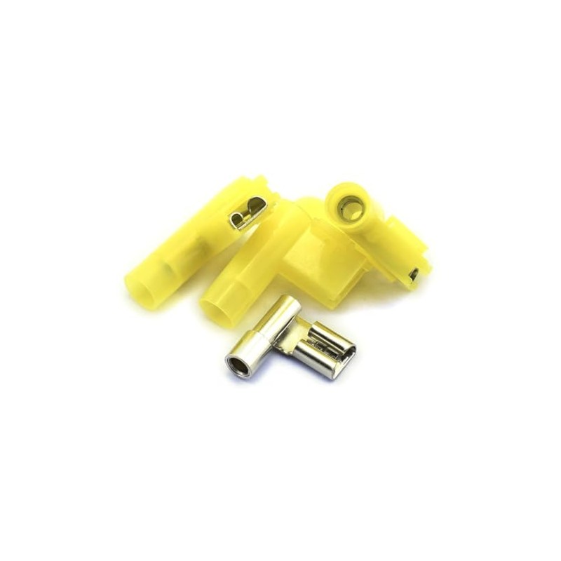 - Type: Yellow, nylon fully insulated spade crimp terminal, suitable for A.W.G. 12-10 cables, 24A current.