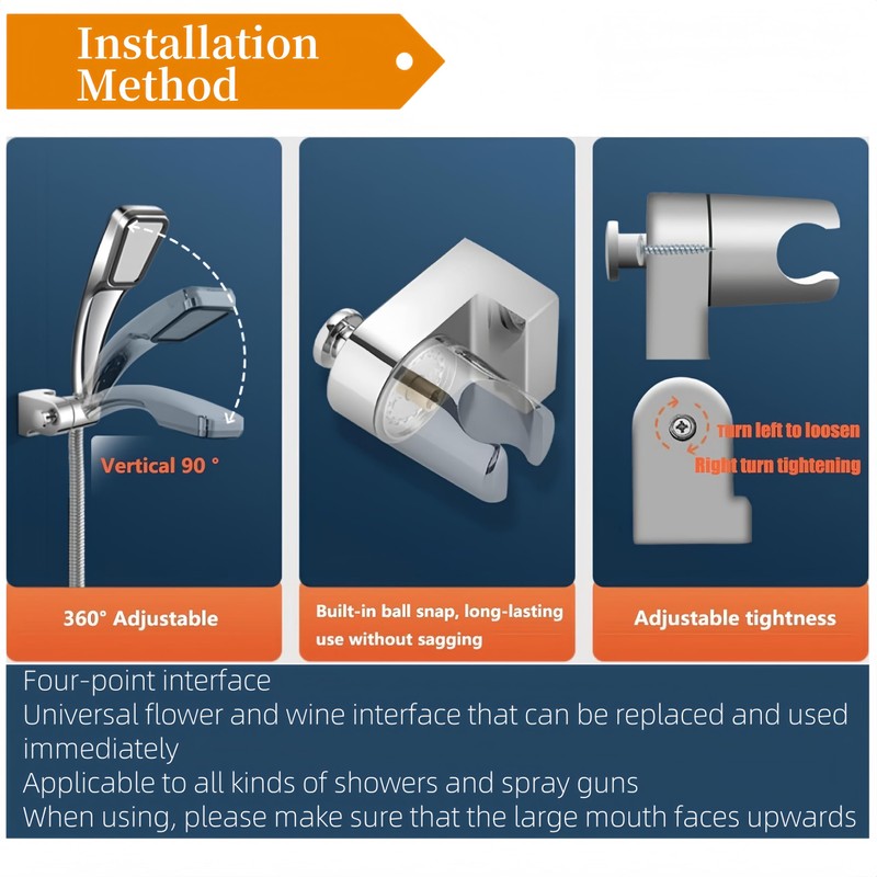 - Innovative ball lock: with soothing click sound, our holder keeps your shower head securely in place. Improved design for heavy duty shower heads.