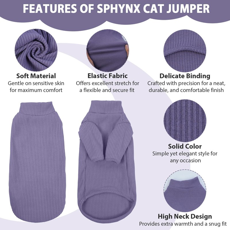 Hjyokuso Hairless Cat Sweater, Sphynx Cat Clothes, Kitten Clothes, Breathable Sweaters Cats, Kitten Pullover Sleeves, Cat Jumpers Cats Only, Cat Clothes Sphynx, Cornish Rex, Devon Rex, TaroPurple