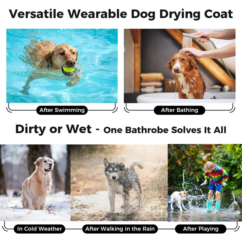 - 【EXCELLENT MATERIAL】 Our dog drying coat is made of microfiber, which makes the dog towel particularly absorbent. It absorbs water quickly. This allows your dog to dry off more quickly and easily after swimming, a walk in the rain or after a shower. In winter, it can also be used as a dog coat to keep the dog warm.