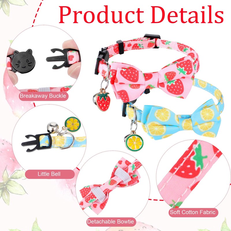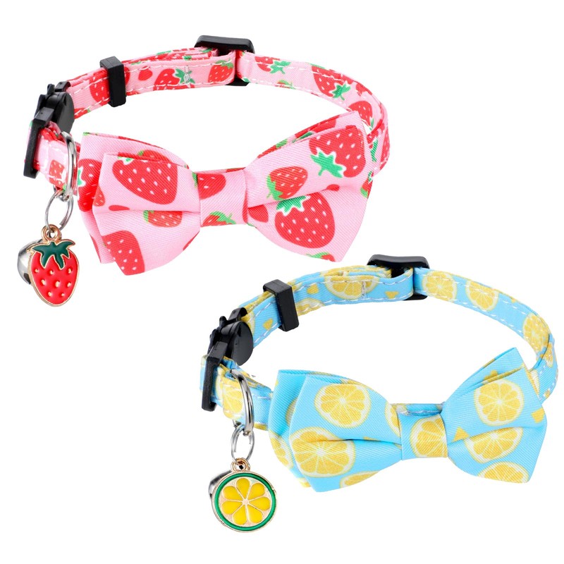 - Summer Patten Collar: We have prepared two cute summer fruit pattern ties and cute pendants for your cat to express your cat's unique personality. The lemon pattern and strawberry pattern bring a fresh and lively temperament, transforming your pet into the most fashionable companion for any occasion
