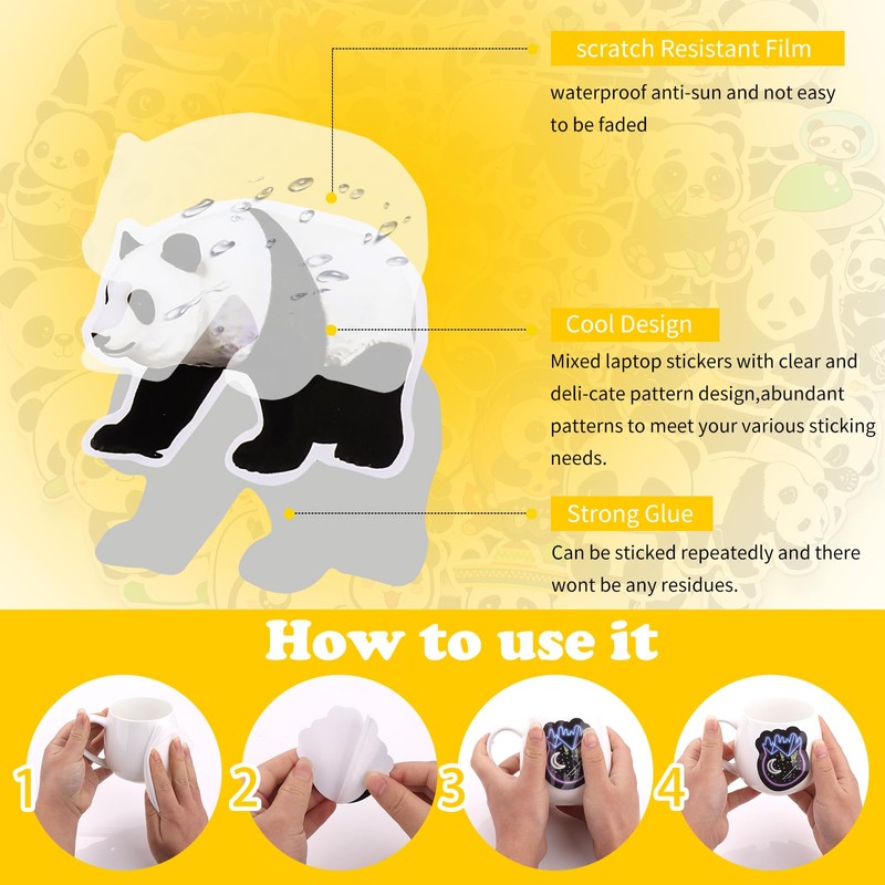 - Versatile in everyday use: the panda stickers are perfect for decorating water bottles, laptops, helmets, notebooks, motorcycles, scrapbooks, fridges, doors and much more. They bring a charming touch to the game everywhere! With these cute panda stickers, every item becomes an individual eye-catcher - whether for children's room, office or on the go