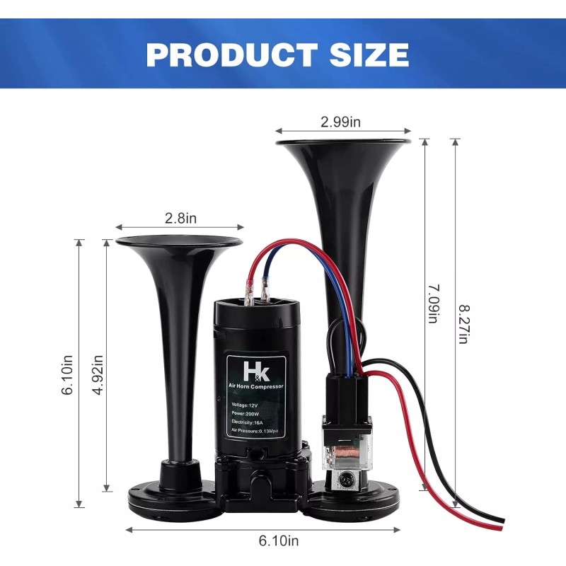 HK 12V 150db Air HornKit with Compressor for Any 12V Vehicles Trucks Super Loud