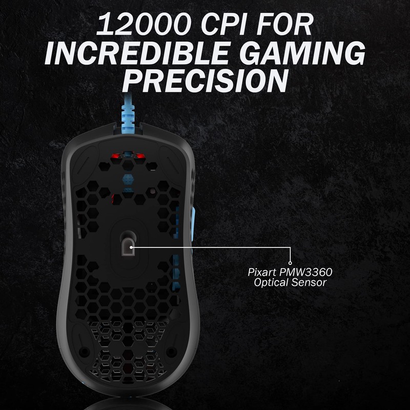 HK Gaming Mira S Ultra Lightweight RGB Gaming Mouse | Honeycomb Shell | 61 Grams | max 12000 cpi | USB Wired | 6 programmable Buttons | On-Board Memory | Anti Slip Grips | Mira-S Blue Phantom