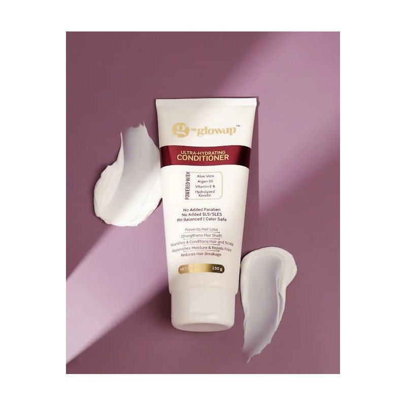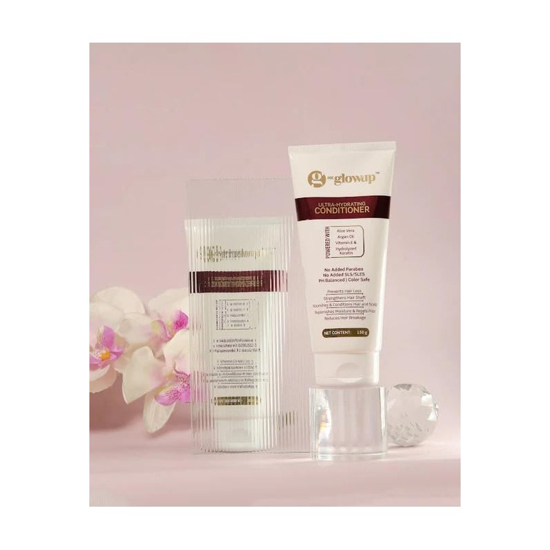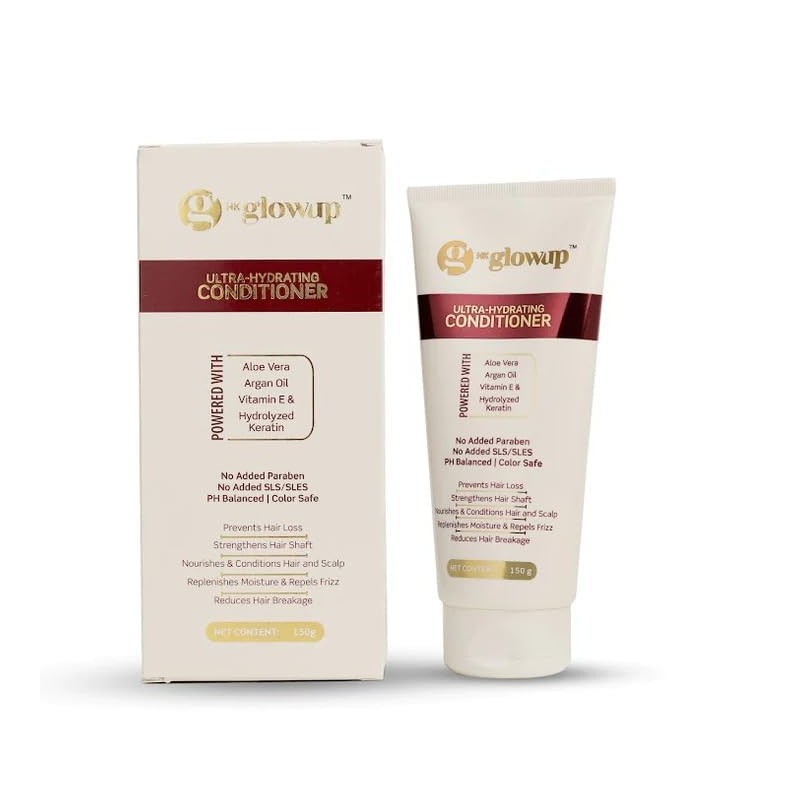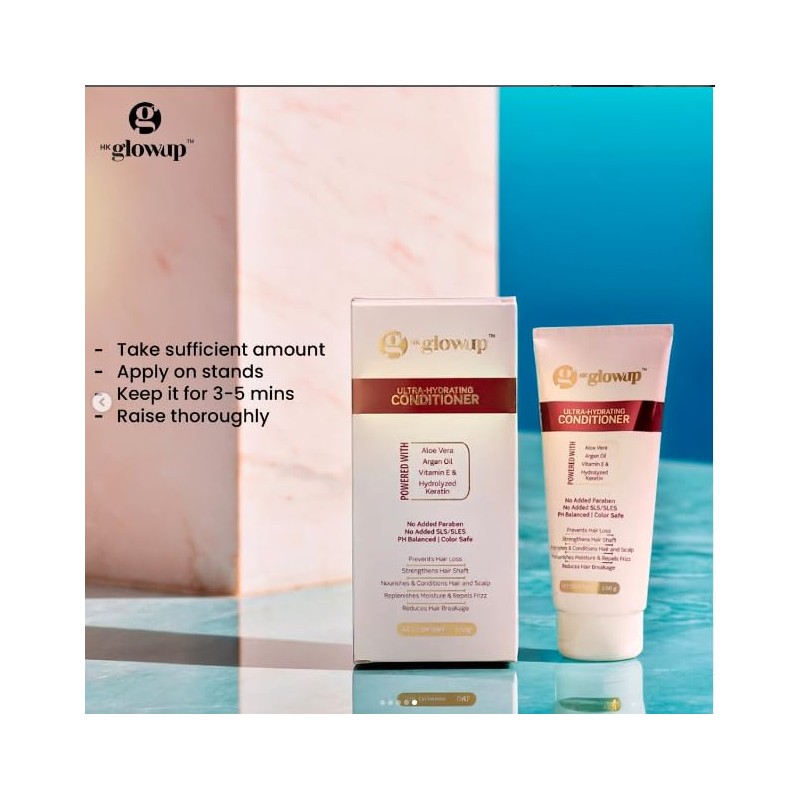 - HK Ultra-Hydrating Conditioner : HK Glowup Intensely hydrating conditioner suitable for both women and men, catering to all hair types, Formulated with Vitamin E and Aloe vera to nourish and revitalize hair, leaving it smooth and frizz-free.