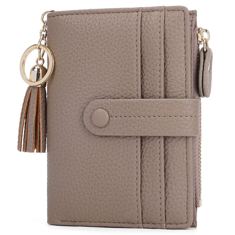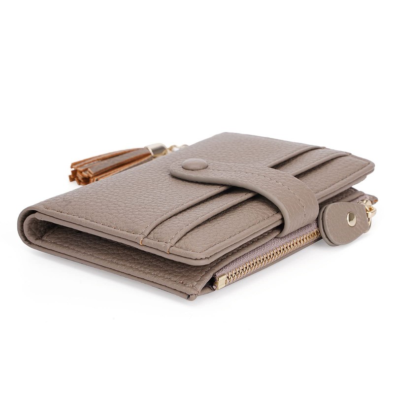HKCLUF Small Purses for Women, Leather Wallet RFID Blocking Credit Card Holder Bifold Ladies Coin Purse with Tassel(Grey)