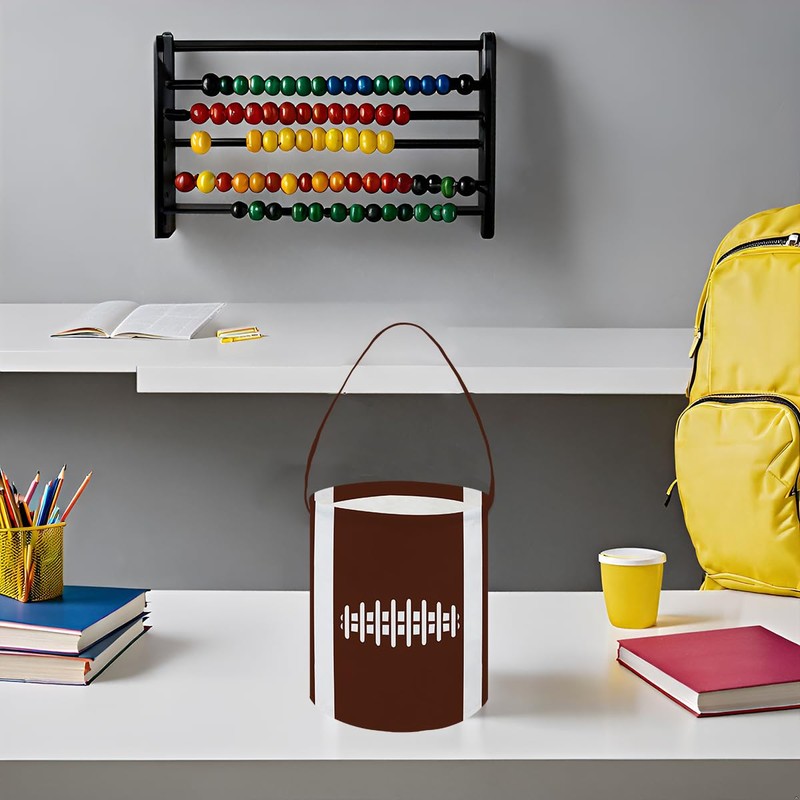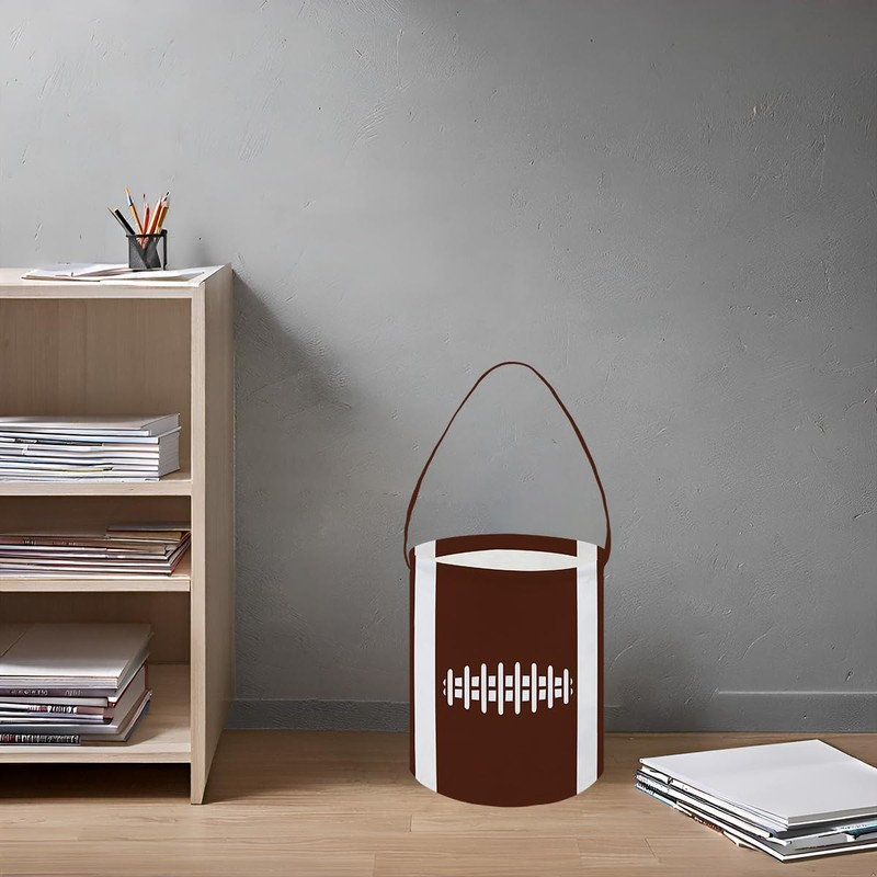 HKEC Small Canvas Bucket,Easter Buckets,Gift Baskets with Handle,Cute Pattern Candy Basket Empty,Bucket Decoration(Rugby)